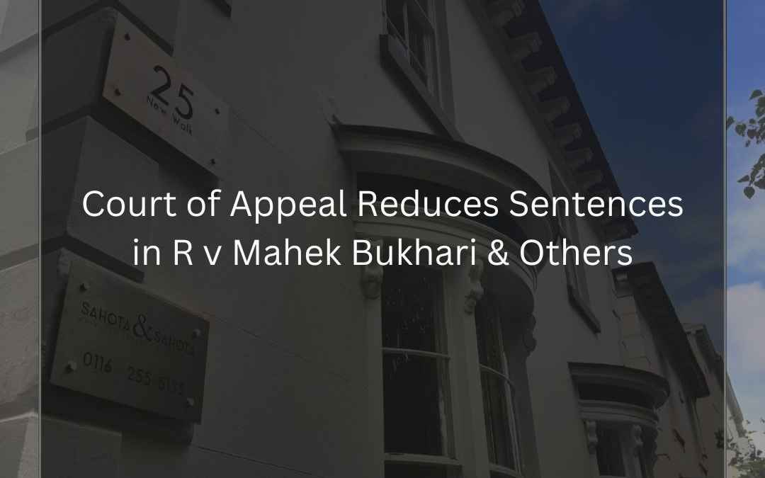 Court of Appeal Reduces Sentences in R v Mahek Bukhari & Others